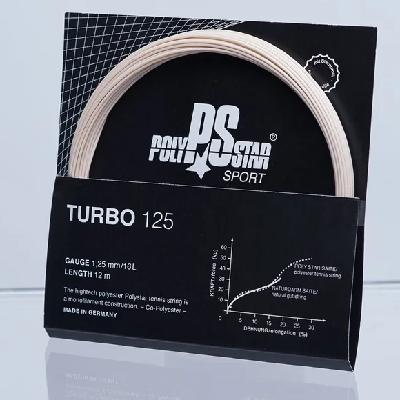 POLYSTAR ターボ 2026/2/13 2026/2/23 ¥3,190(税込) ⇒張り代込みで¥3,500(税込) 【素材・構造・太さ】 ナイロン・マルチフィラメント・1.25mm 【特徴】 究極のスピン系ストリング。 特徴的な星形断面構造を備えており、これによりボールへの食いつきが良くなり、トップスピンやスライスショットが最適化されます。 卓越した推進力も提供し、ゲームを優位に進めることができます。 中級者から上級者レベルのプレイヤー向けに設計されています。 【レビュー/インプレ】 特徴的な星形断面構造で、ボールに良く食いついて、スピン性能が非常に高いです。反発力は低めなのでアウトしにくいです。また打感がそこまで硬くないのも魅力的です。 【性能データ】 反発力 ★★★★☆☆☆☆☆☆ 4 スピン ★★★★★★★★★☆ 9 コントロール ★★★★★★★★★☆ 9 ソフト感 ★★★★☆☆☆☆☆☆ 4 打球音 ★★★★☆☆☆☆☆☆ 4 テンション維持 ★★★★★☆☆☆☆☆ 5 切断耐久性 ★★★★★★★☆☆☆ 7