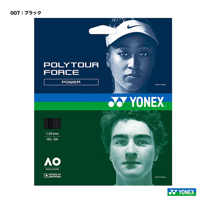 YONEX ポリツアーフォース 2026/2/21 2026/2/22 ¥3,300(税込) 【素材・構造・太さ】 ポリエステル・モノフィラメント・1.25mm 【特徴】 ・柔軟成分を増した配合の調整で打球時の喰い付き感を向上。 ・ストリング表層の分子配向を不均一にする事でパワーを維持しながら、瞬時の喰い付きを生み出す。 ・延伸と緩和の条件で分子配列を制御し繰り返しの衝撃による性能の変化を抑制。 【レビュー/インプレ】 やや柔らかい打球感で反発力がまずまず高いです。フラットドライブで積極的に攻めていくプレーヤーにおすすめです。触り心地もツルツルで気持ちいい。 【性能データ】 反発力 ★★★★★☆☆☆☆☆ 5 スピン ★★★★★★★★☆☆ 8 コントロール ★★★★★★★★☆☆ 8 ソフト感 ★★★★★☆☆☆☆☆ 5 打球音 ★★★★★☆☆☆☆☆ 5 テンション維持 ★★★★★☆☆☆☆☆ 5 切断耐久性 ★★★★★★★★☆☆ 8